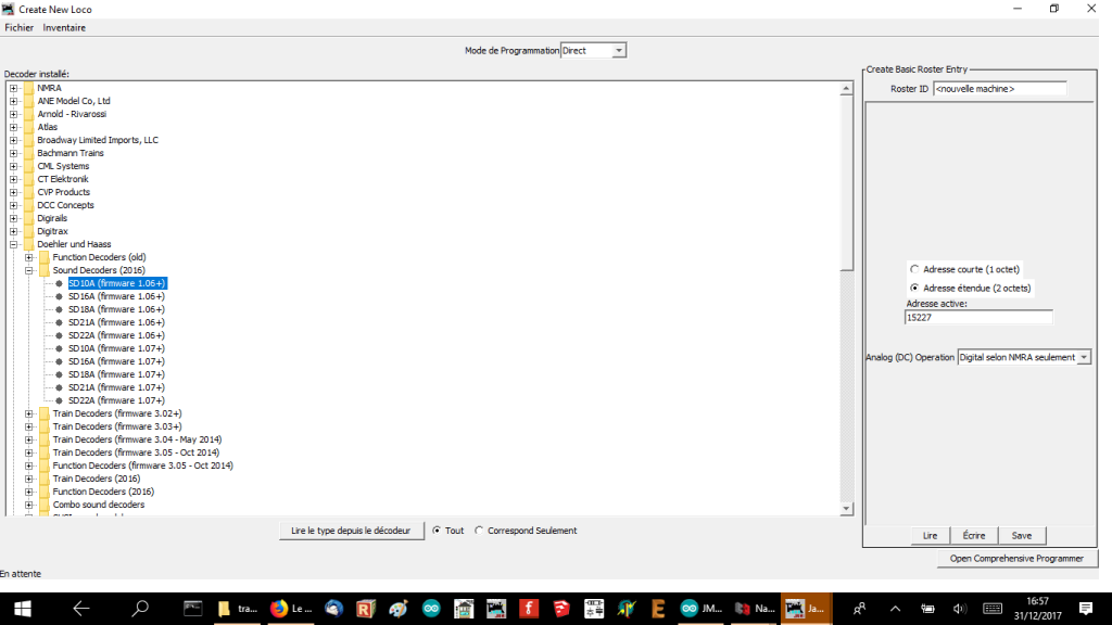 Si vous ne trouver pas votre décodeur, peut-être mettre à jour la dernière version de JMRi, pour récupérer les nouvelles définitions.