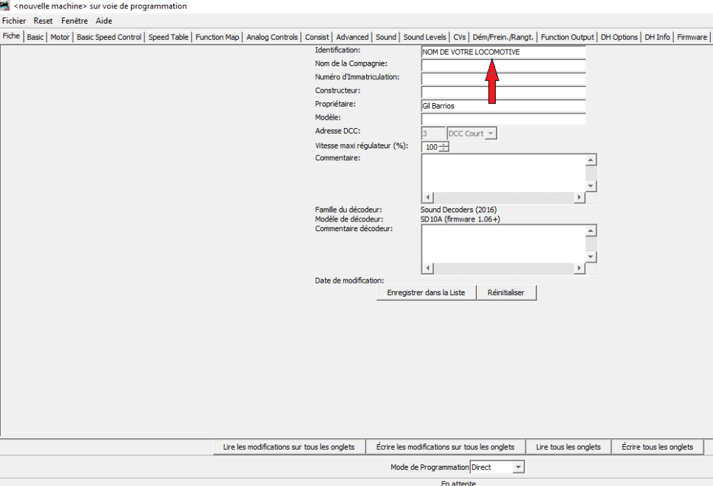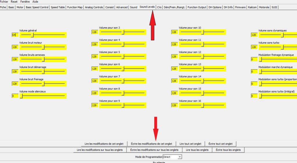 Ici, sur ce décodeur toutes les fonctions (CVs) correspondnats aux différents sons peuvent etre réglés.