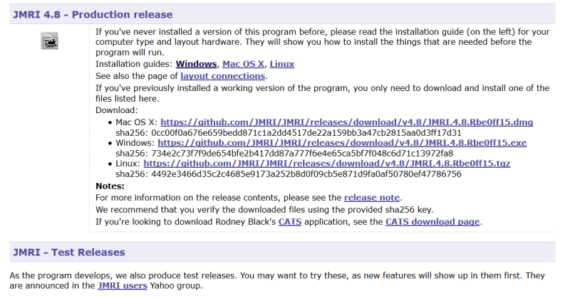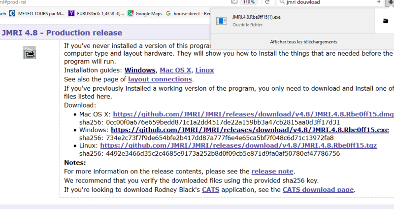 - Pour charger JMRI aller dans la parties de l'écran de chargement, JMRI X.X Production release - Version de production. (cliquer sur le clien). Si ce lien n'est pas actif, vous devez aller dans le site JMRI et choisir dans le bandeau superieur download .